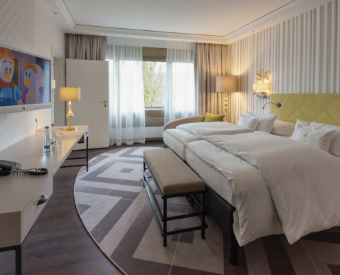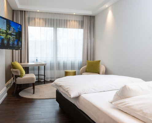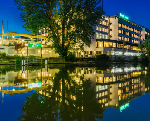 Unsere 125 komfortablen Zimmer und Suiten bieten Ihnen wahlweise einen traumhaften Blick auf den Neckar oder ins Grüne des Parks – perfekt für entspannte Stunden in behaglicher Wohlfühlatmosphäre.
