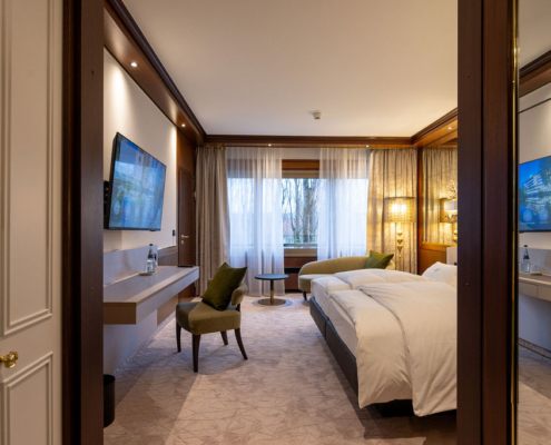 Our elegant superior rooms and suites offer you the highest standard of accommodation. Fine materials, a combination of modern and classic design, plenty of space and light – our rooms meet the highest standards.
